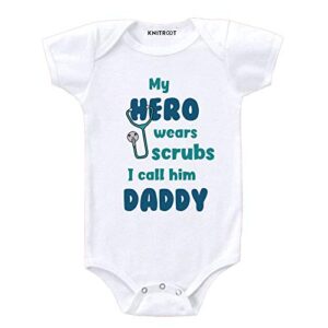 Unisex Baby Onesie Peach Color Half Sleeve My Hero Wears Scrub I call him Daddy(9-12 Months)